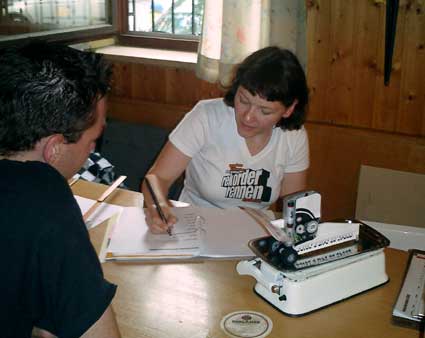 Im Fahrerlager: Die Rennleitung bei der Akreditierung der Rennställe