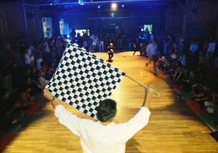 Ein Mann findet seine Bestimmung: Ulrich Skrypalle an der Zielflagge (Foto:Nils Hendrik Müller)